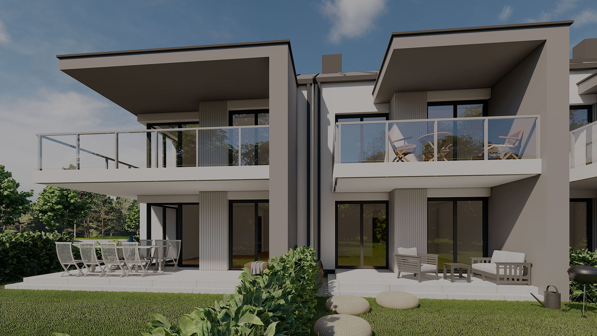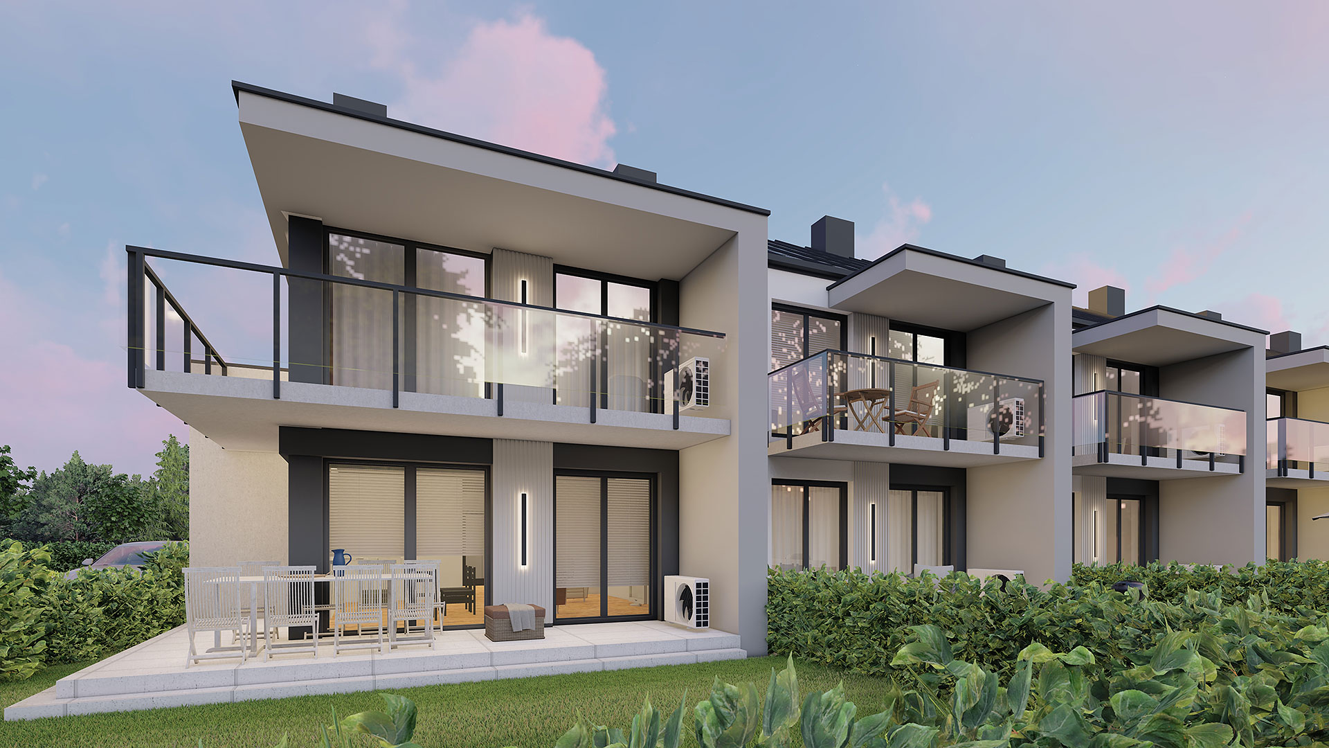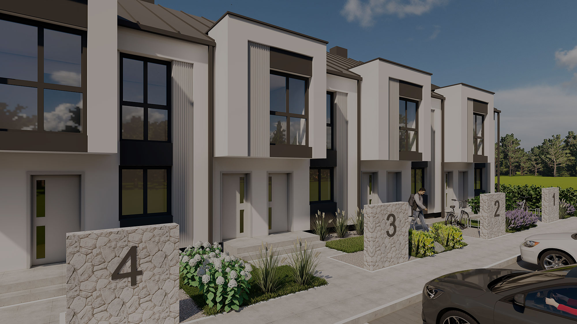 Nasza aktualna inwestycja nowoczesnego osiedla w zabudowie szeregowej w otoczeniu zieleni i wygodnej lokalizacji z bezpośrednim dostępem do infrastruktury potrzebnej do wygodnego i sprawnego funkcjonowania rodziny z dziećmi.